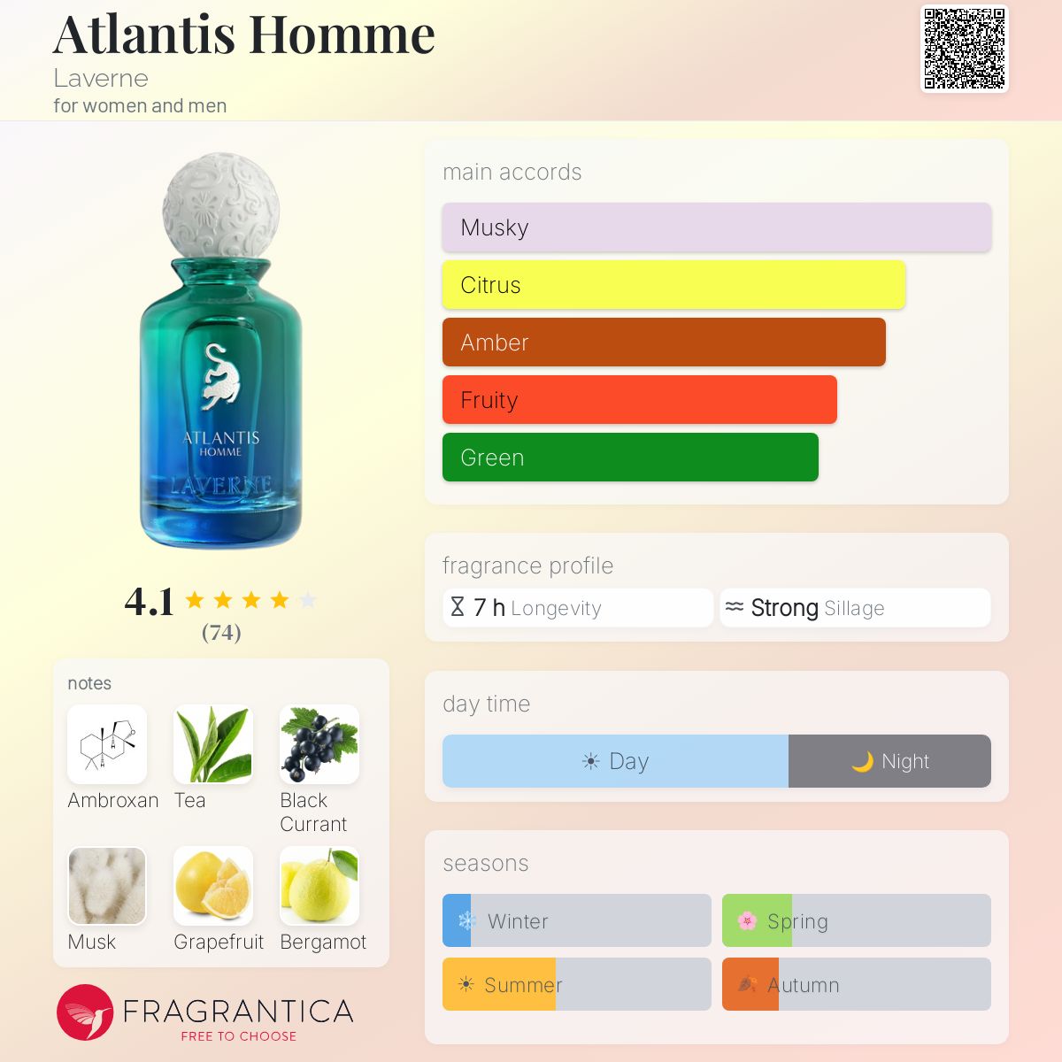 Atlantis Homme 100ml EDP by Laverne is a fresh, modern green fragrance designed for both men and women. It combines citrus brightness, aromatic tea, and soft musk to create a scent that feels clean, versatile, and effortlessly elegant.