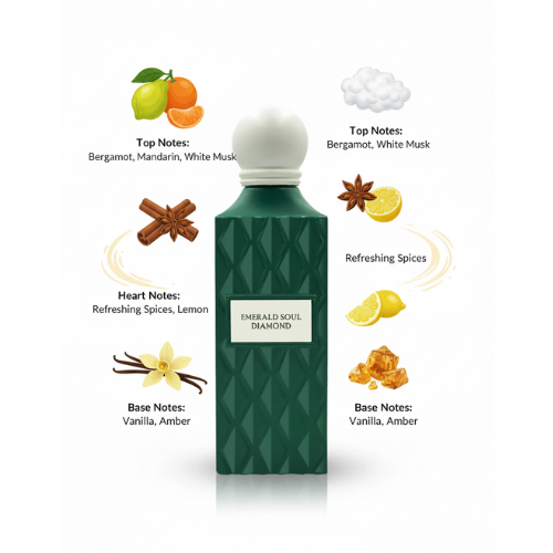 The Emerald Soul Diamond 150ml wholesale perfume opens with bright citrus freshness that transitions into a juicy and vibrant fruity heart. The warm and creamy base leaves a lasting impression, making it ideal for retail display and wholesale distribution. This Emerald Soul Diamond 150ml wholesale fragrance appeals to a wide audience looking for a sophisticated, long-lasting scent.