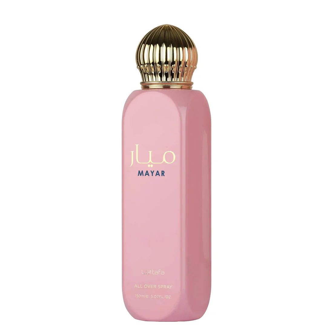 Mayar All Over Spray by Lattafa is a premium women’s Arabic body mist crafted to provide a long-lasting, luxurious scent experience. The 150ml spray blends fruity, floral, and warm resinous notes, making it ideal for daily wear, layering with perfumes, or gifting. Perfect for wholesale distributors and retailers seeking high-demand Arabic body sprays.