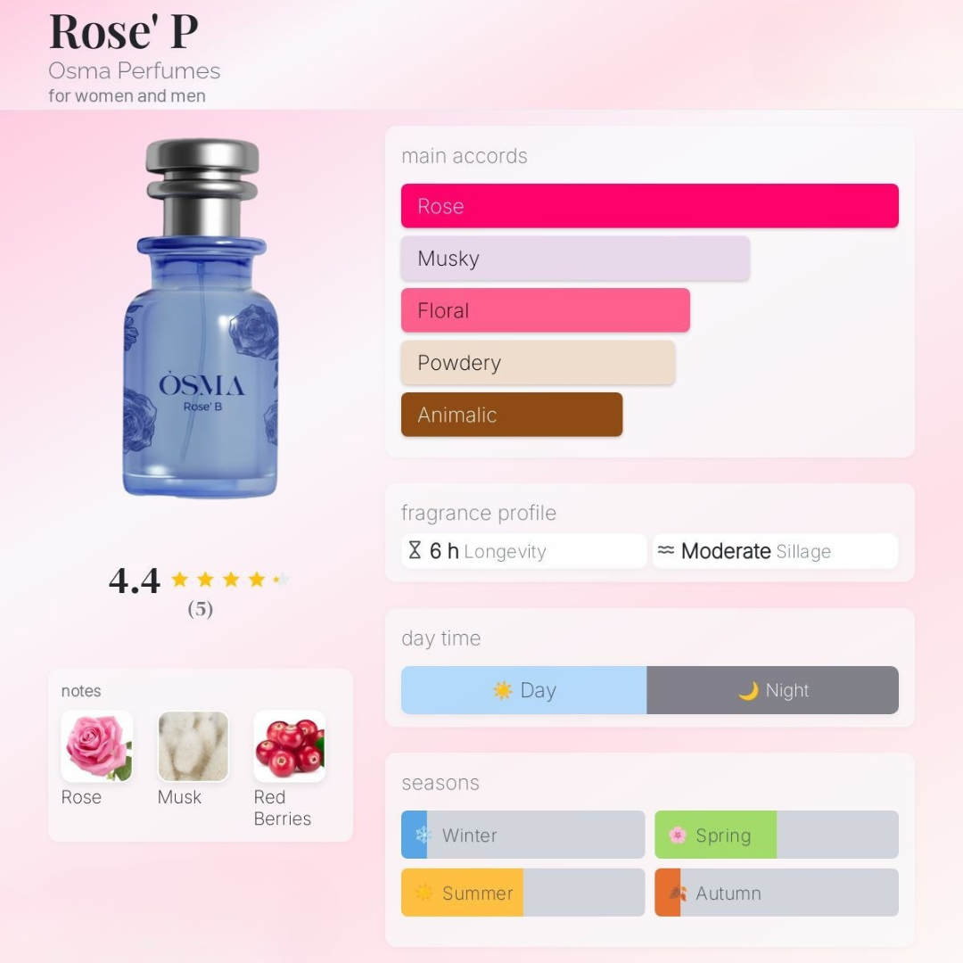 Osma Rose P 75ml wholesale Eau De Parfum by Osma Perfumes is a refined women’s fragrance that blends fruity freshness with romantic florals and soft musky warmth. This elegant Osma Rose P 75ml wholesale perfume is designed for boutiques, gift shops, and wholesale fragrance distributors looking to offer feminine scents with strong retail appeal. With its delicate rose character and smooth musk base, it is ideal for customers who appreciate graceful and sophisticated perfumes.